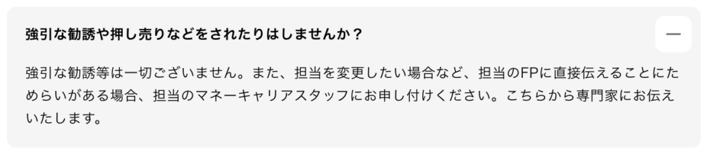とはいえマネーキャリアは、顧客の悩みを解決することを最優先にしているから、強引な勧誘はない!