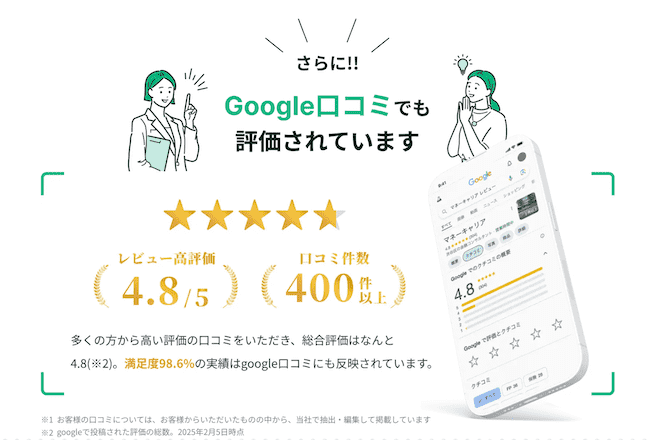 そんなマネーキャリアは、2025年2月時点で累計相談件数が10万件を突破し、相談満足度はなんと98.6%💪✨