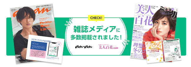 マネーキャリアは、an・anや美人百花など、有名な雑誌にもたくさん掲載されているから、客観的に見ても安心して使えるサービスだよ!