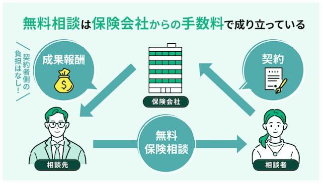 無料相談を受けて、保険や投資の契約が決まったときに、企業から担当FPさんに手数料が支払われるの☺️✨