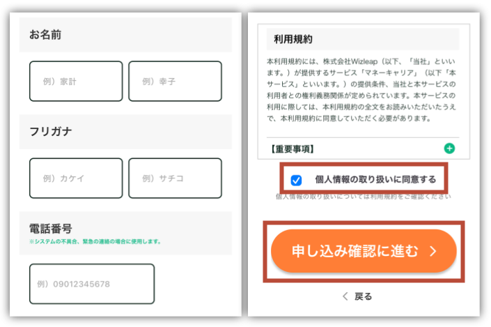 次に、名前と電話番号を入力してね。