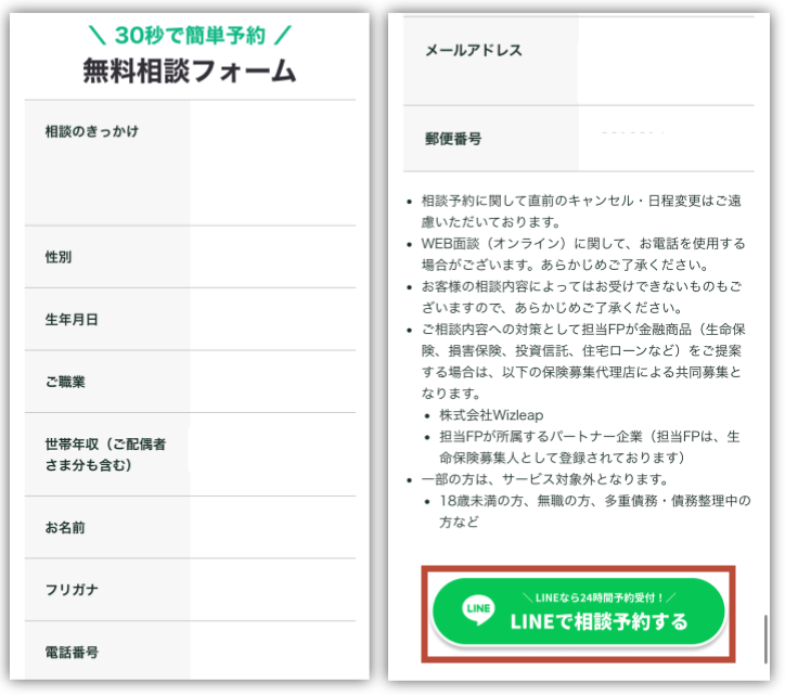 最後に、入力内容をチェックしたら「LINEで相談予約する」をタップ!