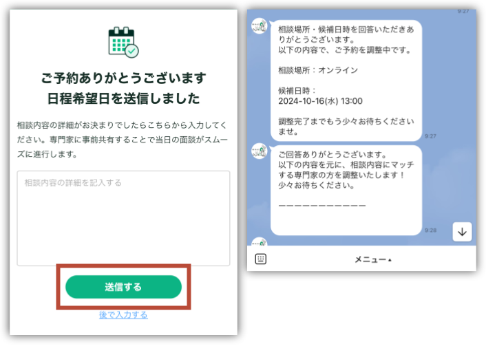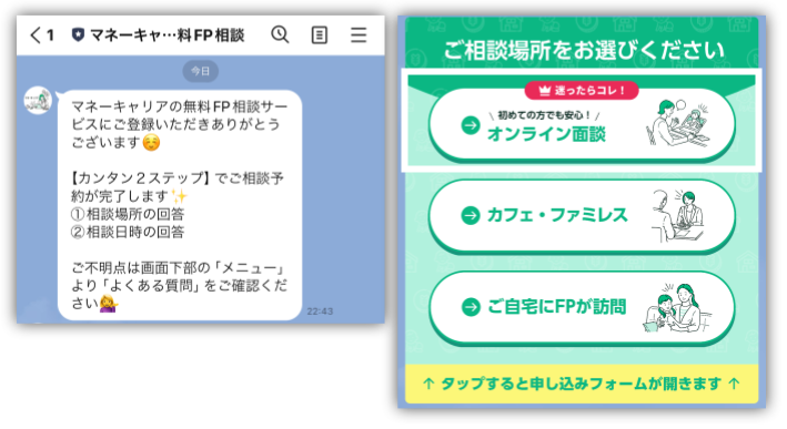続いて、公式LINEで相談場所と日時を決めるよ。
