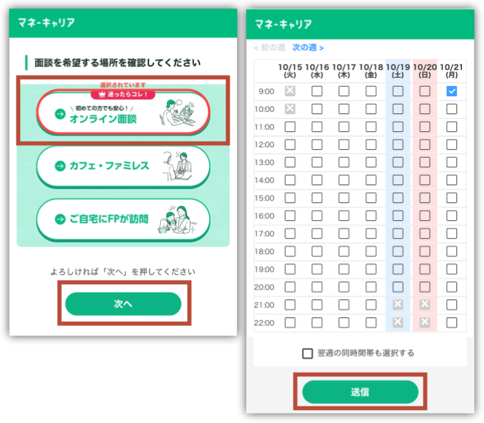 希望日時は複数選べるから、いくつか候補をあげておくとFPさんともマッチしやすいよ🥰💓