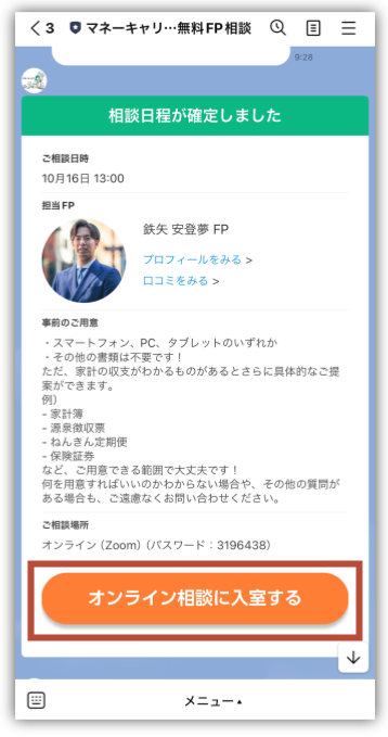 当日は「オンライン相談に入室する」をタップして相談してね☺️✨