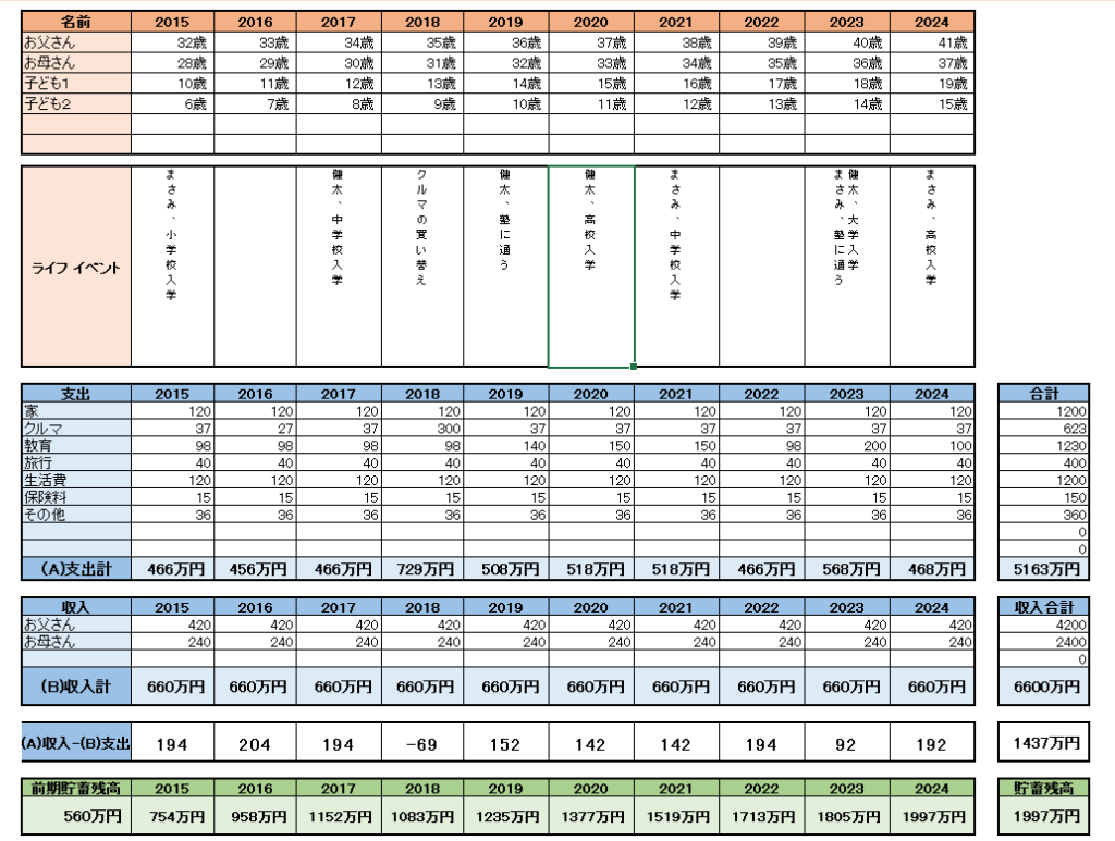 こんな感じで、具体的なライフイベントと出費が時系列にわかるから、計画的にお金を準備できるよ!